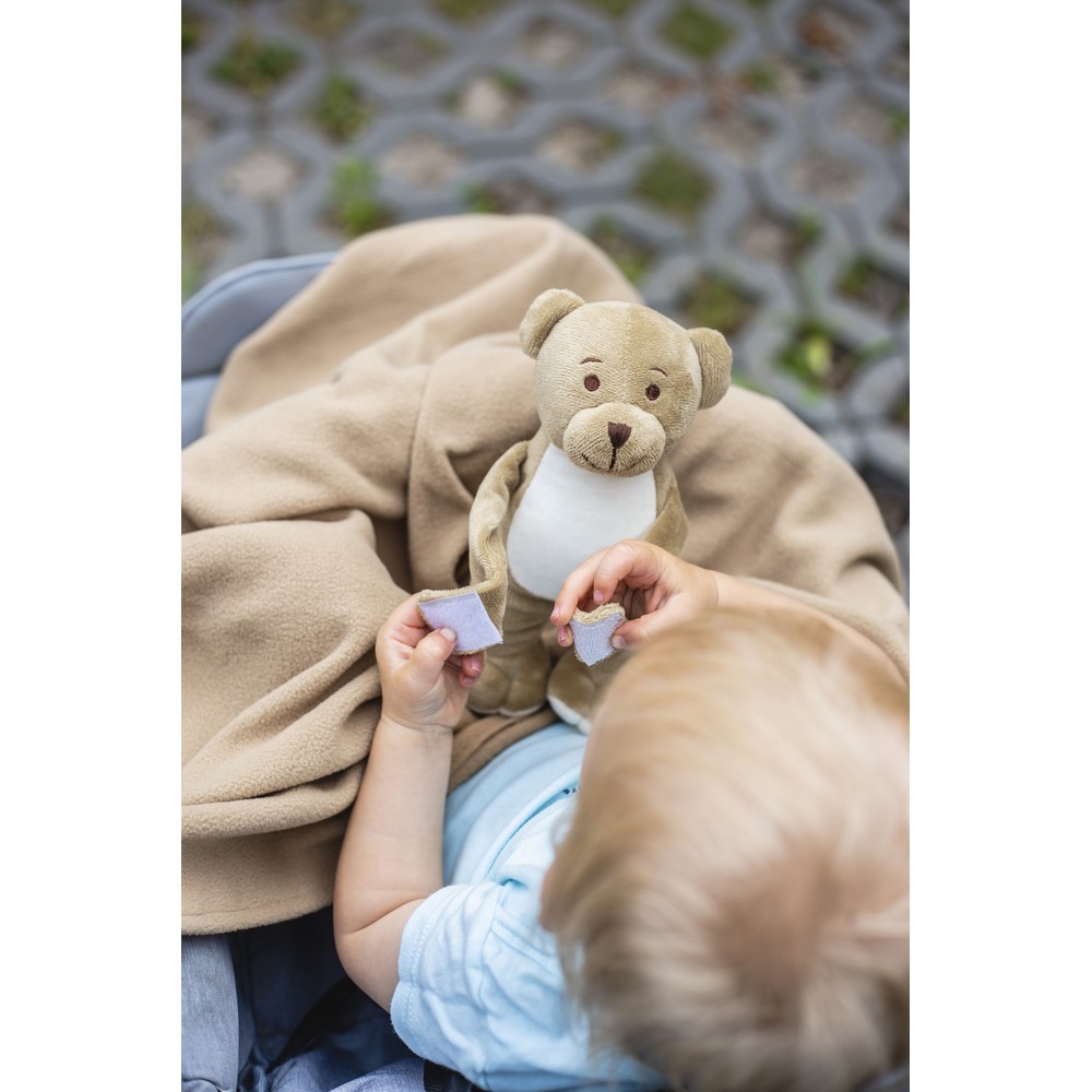 Teddybär mit einer Decke als Kundenpräsent